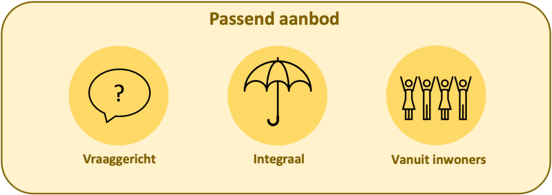 Het aanbod binnen een wijk is afgestemd op de vraag van de inwoners. Er wordt hierin niet meer gedaan dan noodzakelijk. De regie blijft bij de inwoners.